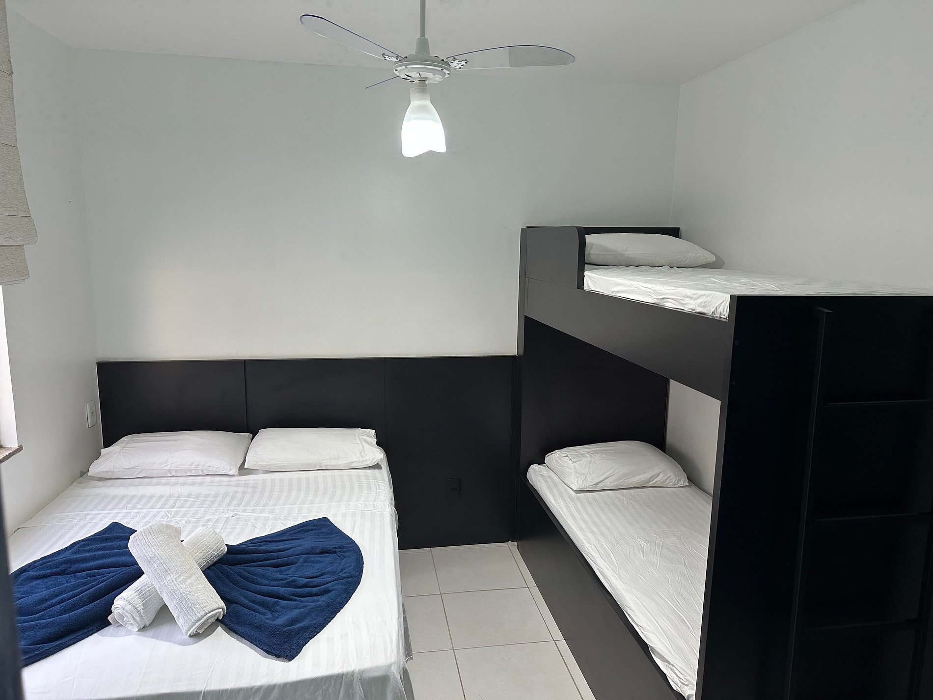 - Na suíte #3 tem uma cama alta de solteiro (tipo beliche, mas só a alta) e 2 camas de solteiro que dá pra juntar e fazer uma cama Queen.