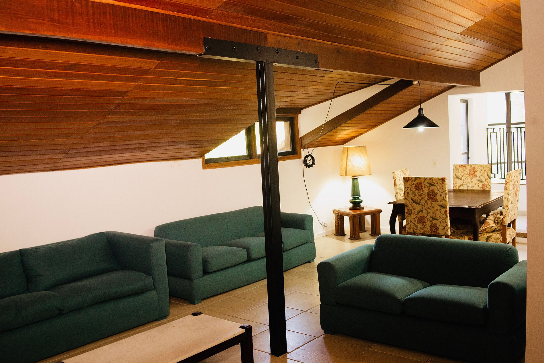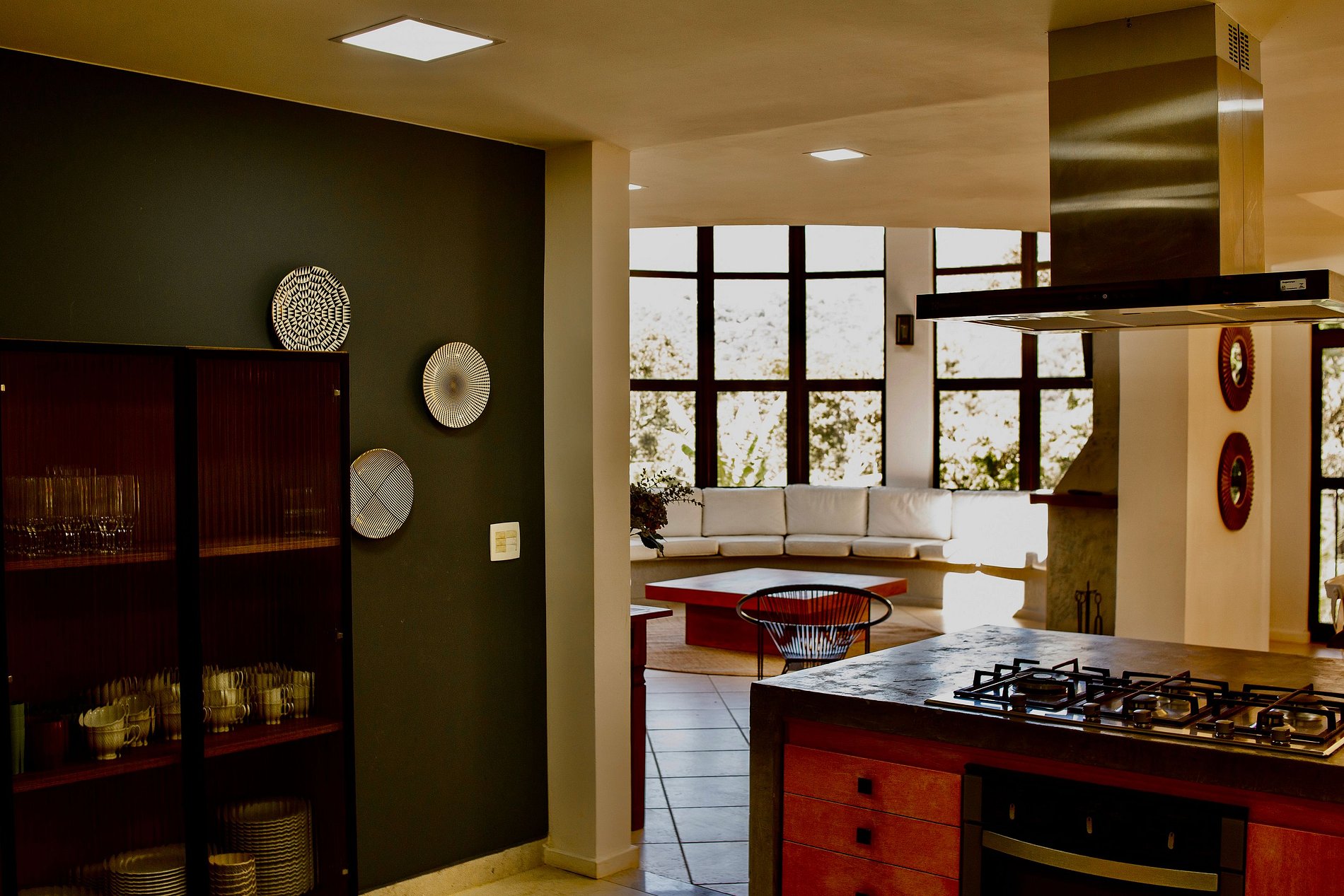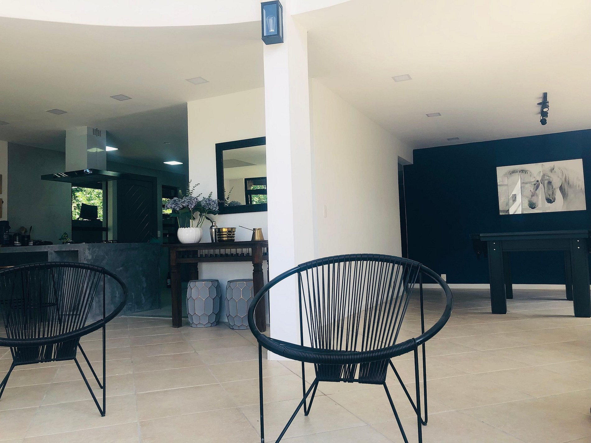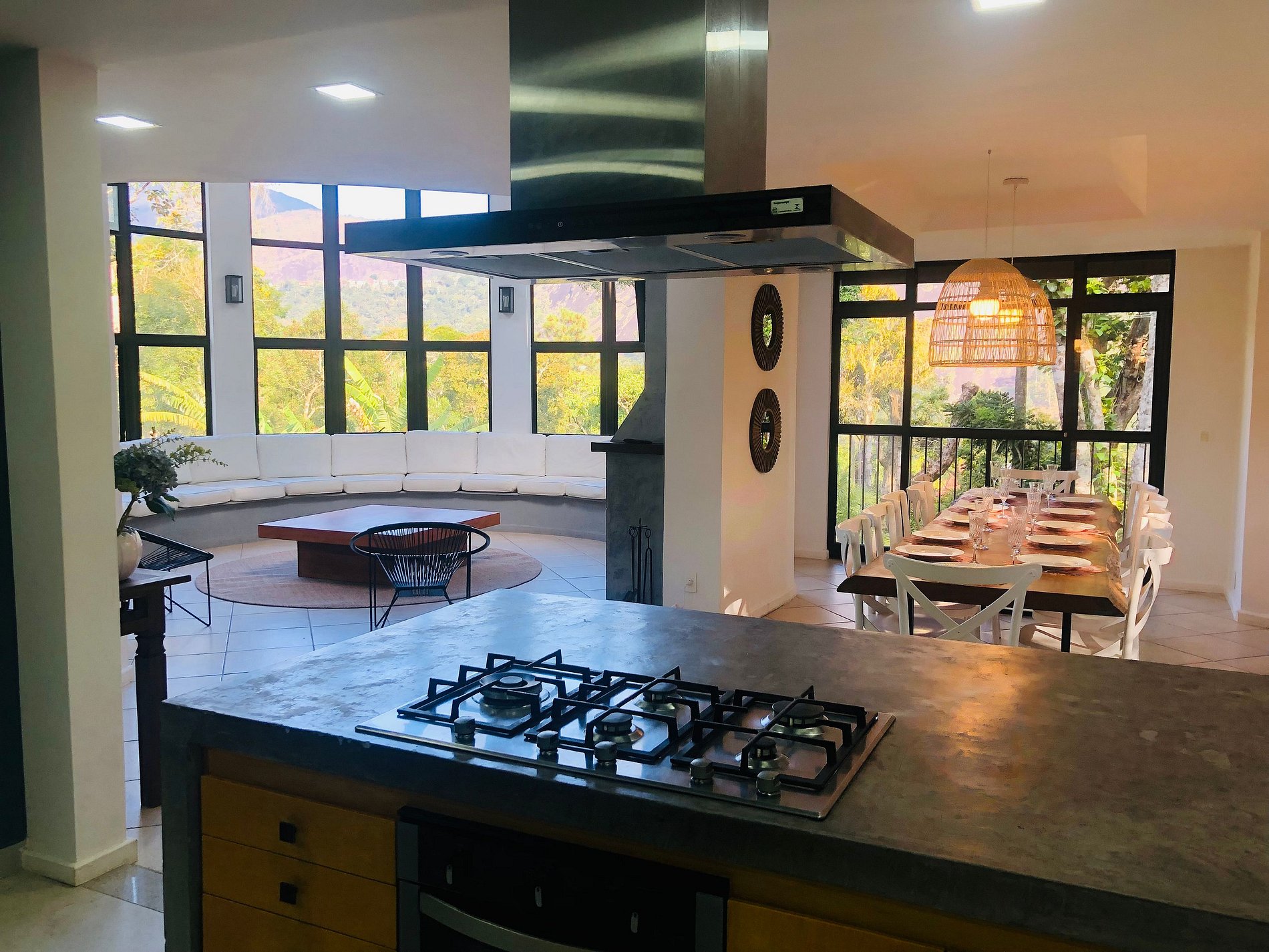ÁREA DE LAZER INTERNA: No primeiro andar há uma excelente integração entre a sala de lareira / estar, a sala de jantar, a cozinha e a sala da sinuca. São quase 100 m2 de área integrada interna. Isso garante que mesmo nos dias mais frios e chuvosos se possa curtir a convivência com amigos e família com a mesma liberdade do quintal. Parte grupo preparando petiscos em volta do fogão, parte do grupo pertinho da lareira tomando um vinho, parte do grupo jogando uma sinuquinha, parte do grupo fofocando na mesa, mas todos próximos e interagindo já que é tudo muito integrado.