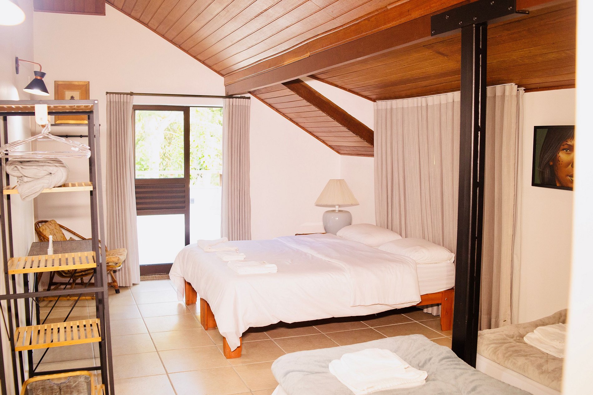 Suite #5 tem uma cama queen e duas de solteiro;