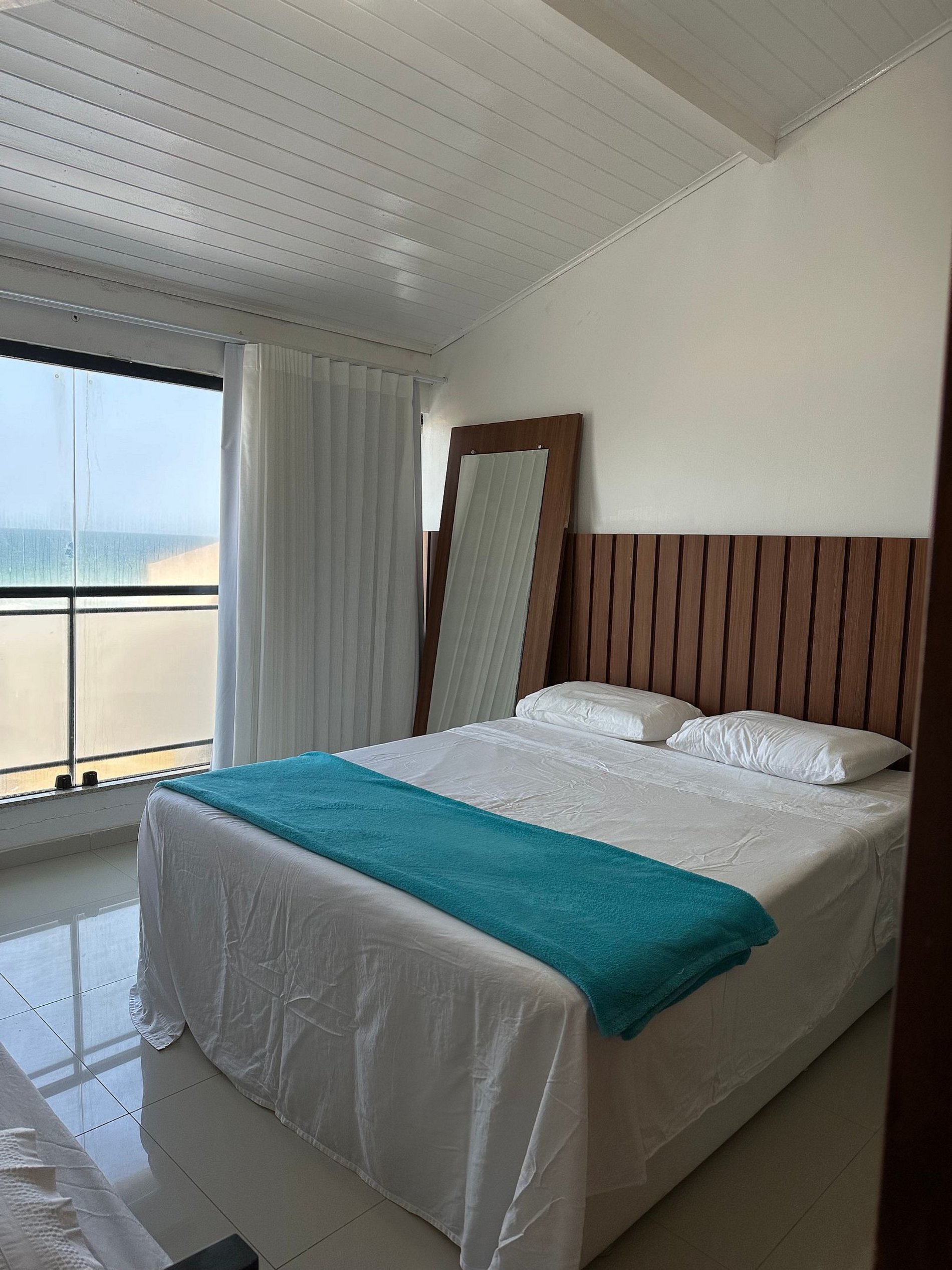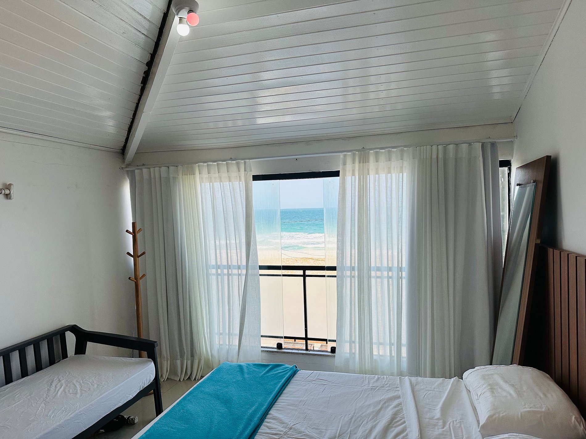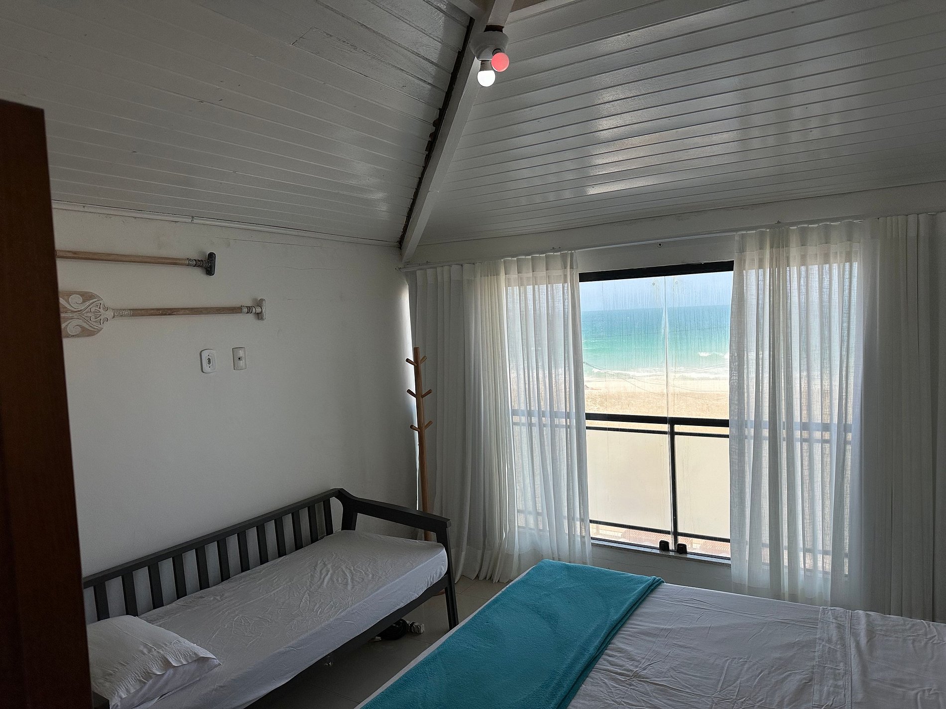 - O quarto #6 é uma suíte de frente para o mar. Tem uma cama Queen e uma cama de solteiro. Fica no terceiro andar;