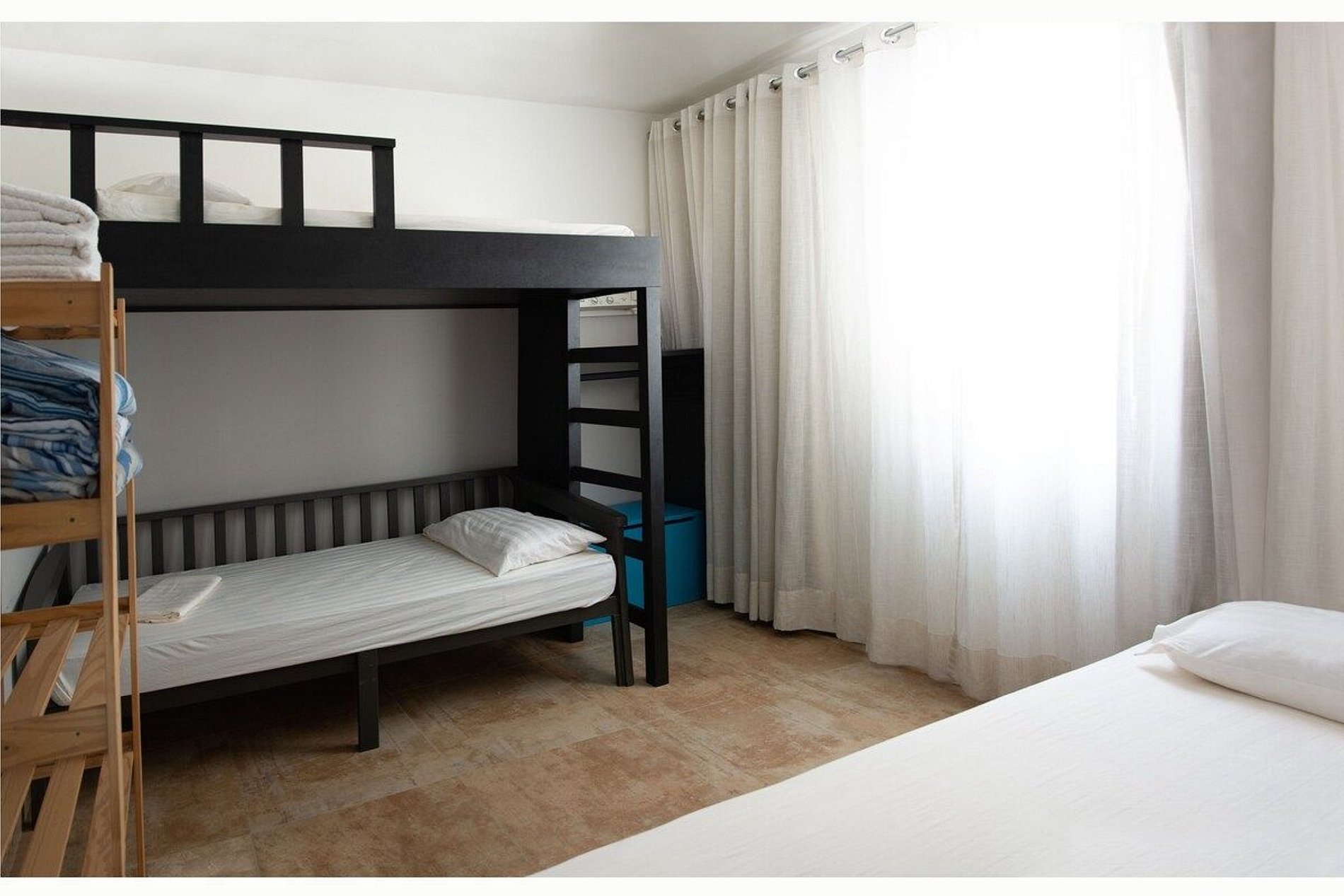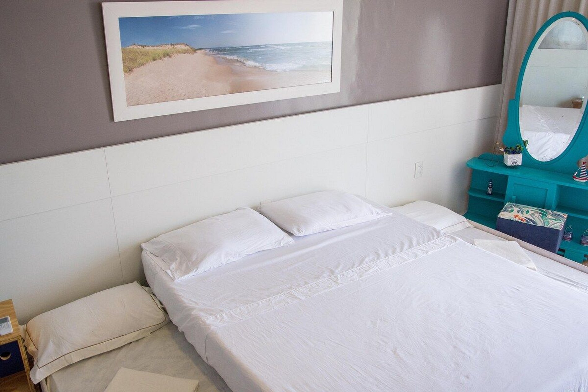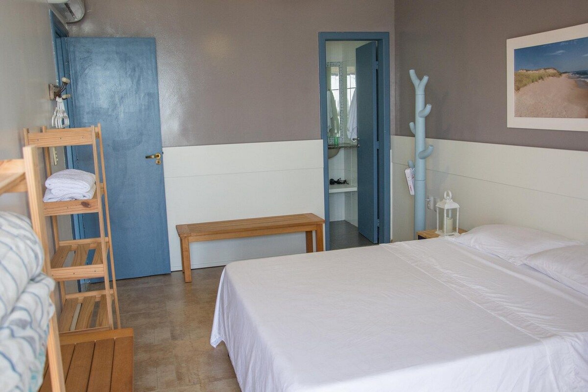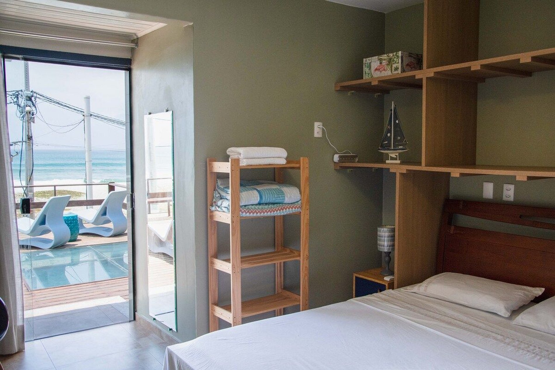 - O quarto #6 é uma suíte de frente para o mar. Tem uma cama Queen e uma cama de solteiro. Fica no terceiro andar;