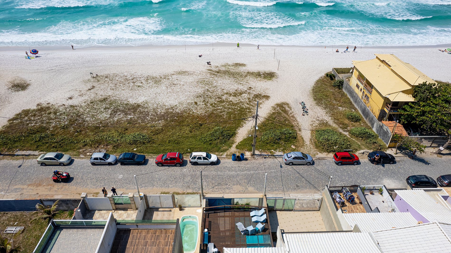 Quem quer acordar um pouquinho mais tarde, pode dormir tranquilo sabendo que a turma está na praia logo em frente. Quem quer tirar um cochilo durante a tarde é só caminhar 10 metros para sair da praia, tomar uma ducha e tirar seu cochilo. E quem acorda cedo não precisa ficar trancado esperando o grupo acordar para dar uma caminhada na areia.